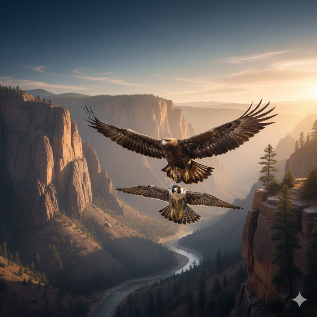 - Halcones: Los maestros de la velocidad. El halcón peregrino es el animal más rápido del mundo, superando los 300 km/h en picado. Su ala acabada en punta es pura ingeniería aeronáutica.
